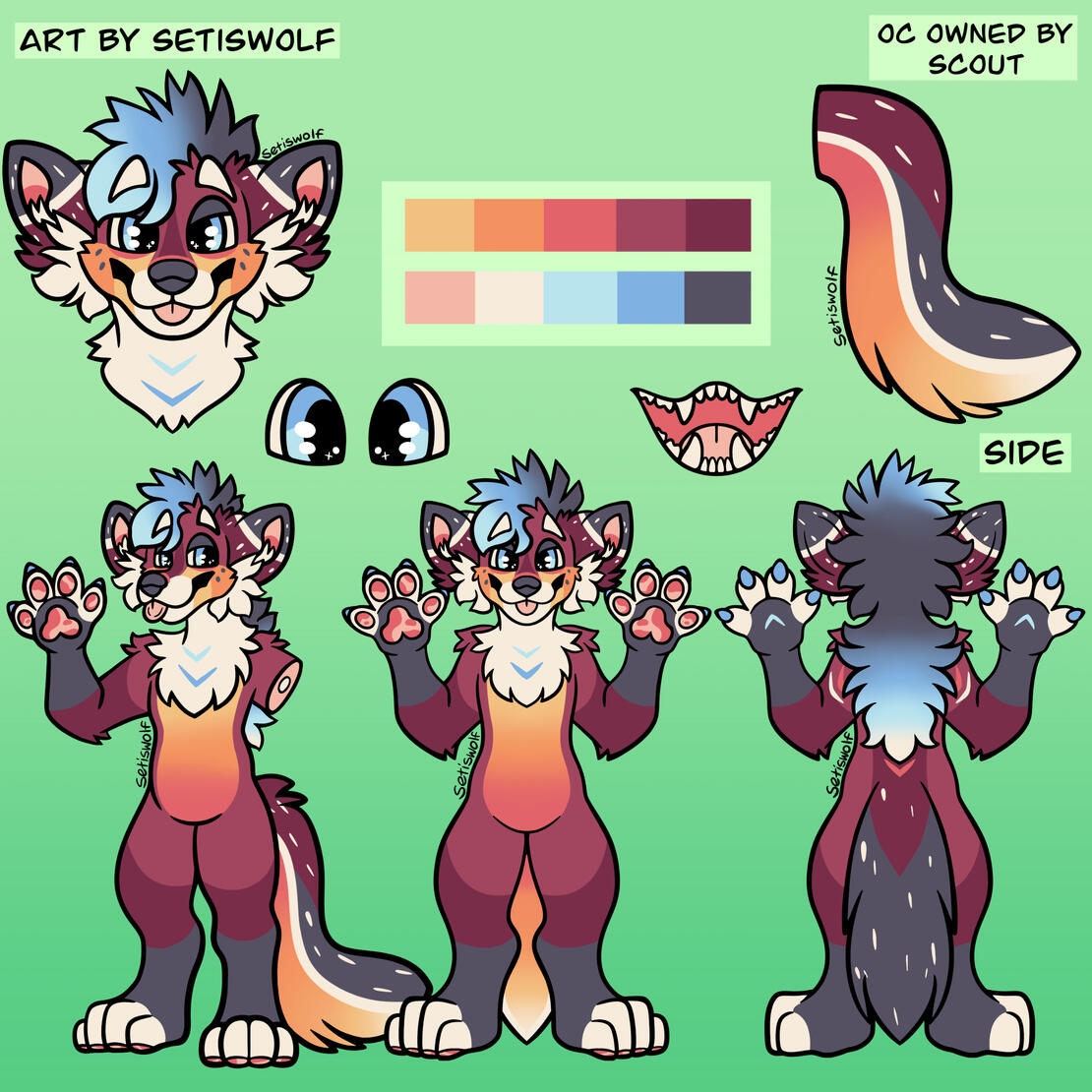 On Base - A full colour of the base shown in the first or second image. Includes added information and very minor line changes.Regular - A front and back full body of your character.Line Edits - Whether or not a character will require major line edits to the original reference base. Please message me regarding edits as I have other species available that are not shown here!With Extras - A front and back full body of your character, as well as added closeups of their eyes, tail and mouth, and a symmetrical headshot.
